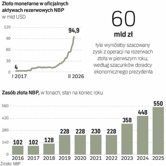 Mimo wszystko obraz planu lekko się klaruje. Doradca ekonomiczny prezydenta Nawrockiego Leszek Skiba przedstawił kalkulacje zakładające dwa warianty działania: sprzedaż i natychmiastowy odkup części złota, albo rewaluację księgową, czyli zabieg polegający na zaksięgowaniu obecnie „papierowych” zysków na zasobach złota, bez fizycznej transakcji. Skutkiem obu NBP wykazałby bardzo wysoki zysk, który – zgodnie z obecnymi przepisami – w 95 proc. trafiłby do budżetu państwa.