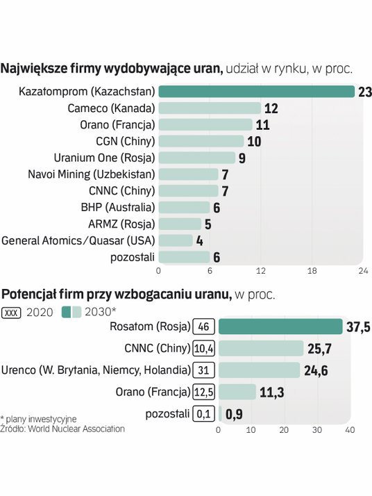 Wyzwaniem może być wzbogacanie uranu. Jak przypomina Gajda, Rosja dysponuje największymi możliwościami realizacji tego procesu potrzebnego przy produkcji paliwa. Podkreśla jednak, że w przeciwieństwie do paliw kopalnych z Rosji Europie znacznie łatwiej jest uniezależnić się od Rosji jako dostawcy dla łańcucha produkcyjnego paliwa jądrowego. – Mamy alternatywy, aby uniezależnić się jako Europa od Rosji. W praktyce wymaga to jednak czasu – dodaje.