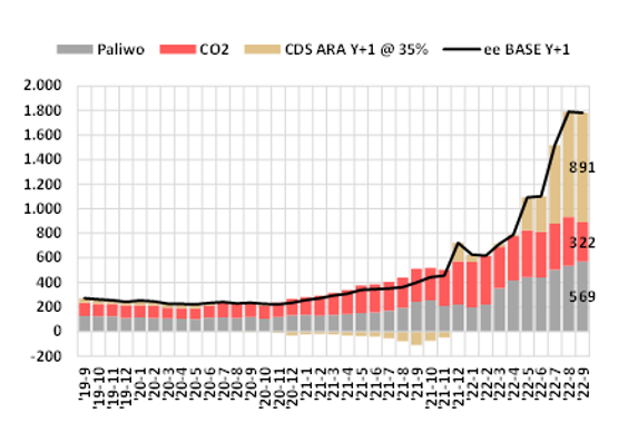 Aby poprawnie uchwycić marże wytwórców energii elektrycznej, należy od ceny energii odjąć koszty wytwarzania, szacowane dla tych samych warunków. Dla rynku spot, cena energii powinna być zestawiona ze spotowymi kosztami wytwarzania; dla rynku terminowego cena energii powinna być zestawiona ze terminowymi kosztami wytwarzania – wskazują analitycy IJ. Jednocześnie zauważają, że o ile dla gazu ziemnego oraz CO2 publicznie dostępne są ceny spot oraz terminowe, o tyle pojawia się problem z cenami węgla. Dotychczas jedyne oficjalnie liczby na jakich można bazować to ceny węgla podawane przez Agencję Rozwoju Przemysłu z dwumiesięcznym opóźnieniem – tzw. indeks PSCMI_1. Jak podaje Agencja, jest to cena ustalana jako średnia ważona z transakcji zrealizowanych na polskim rynku węgla energetycznego, zafakturowanych w danym miesiącu kalendarzowym. Można więc uznać, że odzwierciedla warunki spot, ale nic nie mówi na temat cen na rok przyszły. Na europejskim rynku węgla ceny spot oraz terminowe ilustruje tzw. indeks ARA, obliczany dla różnych horyzontów czasowych.