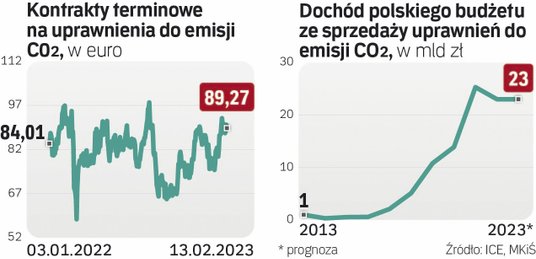 Ceny uprawnień do emisji CO2 utrzymują się na wysokim poziomie w przedziale 80–90 euro za tonę. Jednak zdaniem naszych rozmówców szoków cenowych, które znamy z lat poprzednich, nie będzie. Na stabilizację wskazują niższe przychody do budżetu za 2022 r. z tytułu sprzedaży uprawnień do emisji CO2.