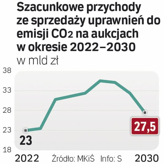 Dotychczas przewidywano, że na FTE trafi 40 proc. przychodów z EU ETS, czyli ok. 100 mld zł. – Nowe porozumienie dotyczące ETS stawia jednak wymóg, aby wszystkie pieniądze ze sprzedaży uprawnień były wydatkowane na cele klimatyczne. Część przychodów, poza FTE, trafiała na rekompensaty dla przemysłu energochłonnego. Nadal jednak duża porcja przychodów szła na cele pozaklimatyczne – dodaje Adamczewski.