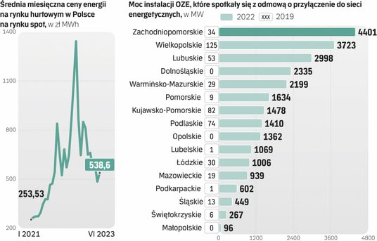 Nieco lepiej wygląda statystyka dla sieci dystrybucyjnych. Nakłady inwestycyjne wynikające z uzgodnionych z prezesem URE planów rozwoju Operatorów Sieci Dystrybucyjnej (OSD) na 2021 r. wynosiły 7544 mln zł. OSD zrealizowały nakłady w wysokości 6248 mln zł, co stanowi 83 proc. planu. Analogiczne plany na 2022 r. wynosiły 8319 mln zł. OSD zrealizowały nakłady w wysokości 8104 mln zł, co stanowi 97 proc. planu. Niedostateczny rozwój sieci dystrybucyjnej to w branży energetycznej główny powód rosnącej liczby odmów przyłączenia dużych instalacji OZE do systemu.