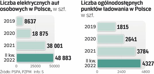 Według grupy Enea prezentowane przez PSPA prognozy wydają się realistyczne. – Plany UE, wynikające z pakietu „Fit for 55”, związane z zakazem sprzedaży aut osobowych i dostawczych z silnikami spalinowymi od 2035 r., powodują intensywne przestawianie przemysłu motoryzacyjnego na napęd elektryczny. W dużych miastach sposobem na poprawę jakości powietrza i ograniczenie hałasu jest coraz częściej wprowadzanie stref niskiej emisji, które nakładają specjalne ograniczenia na właścicieli samochodów spalinowych – zauważa Berenika Ratajczak, starszy specjalista ds. PR w Enei. Dotychczas grupa wybudowała kilkadziesiąt stacji ładowania.