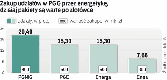 Cztery kontrolowane przez państwo spółki (PGNiG, Enea, Energa i Polska Grupa Energetyczna) poinformowały w sierpniu o zawarciu warunkowych umów sprzedaży Skarbowi Państwa posiadanych przez nie i ich spółki zależne akcji PGG. Wartość sprzedaży to symboliczna „złotówka” za pakiet. W latach 2016–2018 giełdowe firmy energetyczne wydały łącznie 2,3 mld zł (poza tą czwórką PGG dofinansowały nienotowane na giełdzie Węglokoks kwotą 150 mln zł oraz TF Silesia kwotą 200 mln zł) na dokapitalizowanie znajdującej się w trudnej sytuacji finansowej PGG. Była to forma wsparcia największego producenta węgla w Polsce. Grupa PGNiG zainwestowała 800 mln zł w akcje PGG (poprzez spółkę zależną PGNiG Termika). W efekcie dysponowała ona pakietem 20,4 proc. W akcjonariacie PGG były także: PGE (udziały spółki zależnej PGE GiEK), Energa (udziały spółki córki Energa Kogeneracja) i Enea. PGE i Energa dysponowały po 15,3 proc. akcji, które kosztowały w chwili zakupu po 600 mln zł. Do Enei należało 7,66 proc. akcji kupionych za 300 mln zł.