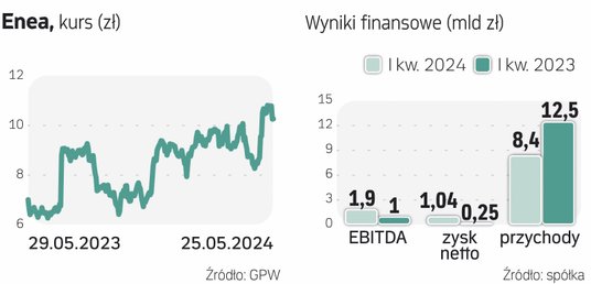 Skąd tak dobre wyniki? To m.in. efekt zakupu energii elektrycznej na rynku po niższej cenie, w chwili kiedy było to bardziej opłacalne aniżeli produkowanie energii z własnych mocy wytwórczych. Enea miała także na stanie węgiel zakupiony po wysokich cenach, co przekładało się także na samą cenę energii. Elektrownie nie pracowały z pełną mocą, ale mimo to nadal na rynku było dużo energii (m.in. z OZE) możliwej do zakupu po stosunkowo niskiej cenie i spółka dokonywała takich okazyjnych zakupów energii. Innymi słowy, taniej było zabezpieczać dostawy energii, dokonując zakupów na Towarowej Giełdzie Energii, niż produkować ją z własnych źródeł. Nie jest to jednak stałe i te warunki się mogą zmienić. Jak słyszymy, tak dobrego wyniku za drugi kwartał tego roku jak w poprzednim kwartale spółka może już nie uzyskać, a przynajmniej będzie jej już o to bardzo trudno.