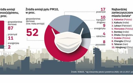 W poniedziałkowy poranek jakość powietrza w niektórych regionach Polski była najgorsza nie tyle w Europie, ile na całym świecie. Według danych AirVisual aż trzy polskie miasta znalazły się w dziesiątce najbardziej zanieczyszczonych miast świata, tworzonej według wskaźnika jakości powietrza (AQI). Na pierwszym miejscu znalazły się Katowice, na czwartym Warszawa, a na siódmym Kraków. We wszystkich mieliśmy do czynienia m.in. z podwyższonymi wskaźnikami szkodliwych pyłów zawieszonych PM10 i PM2,5.
