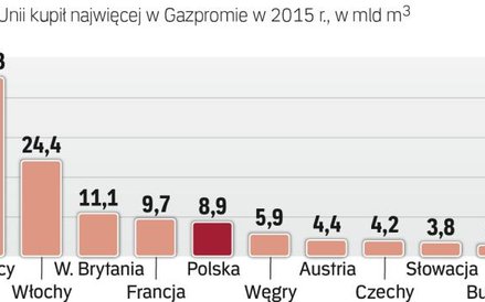 Rosyjski koncern podał, że w ciągu stycznia i lutego sprzedał do Unii Europejskiej 29,3 mln m sześc. gazu, z czego 7,8 mld m sześc. do Niemiec, 3,9 mld m sześc. do Włoch, 3,5 mld m sześc. do W. Brytanii i 1,5 mld m sześc. do Francji. W ciągu dwóch tygodni lutego zakupy niemieckie zwiększyły się o 31 proc. r./r., a włoskie o 70 proc.