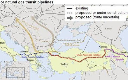 Administracja Informacji Energetycznej (EIA) informuje o rozpoczętej budowie lub pracach przygotowawczych trzech gazociągów, którymi azerski gaz trafi do klientów z Turcji i południa Unii (Grecja, Włochy, Bułgaria).
