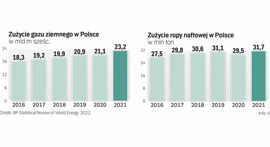 Zaprezentowane dane nie napawają optymizmem, zwłaszcza w odniesieniu do Polski. Nasz kraj z jednej strony systematycznie zwiększa zużycie błękitnego paliwa, a z drugiej coraz mniej go wydobywa. Gaz-System i PGNiG szacują, że w 2030 r. popyt na błękitne paliwo może przekroczyć 30 mld m sześc. Z kolei w odniesieniu do wydobycia sukcesem będzie, jeśli uda nam się je utrzymać na dotychczasowym poziomie. Co więcej, po wybuchu wojny w Ukrainie nad Wisłę został wstrzymany import z Rosji, a dostawy ze Wschodu do Unii Europejskiej zostały mocno ograniczone. Wprawdzie PGNiG i rząd zapewniają, że gazu nam nie zabraknie, ale w przypadku niekorzystnych warunków atmosferycznych i dalszego limitowania przesyłu surowca z Rosji i u nas mogą pojawić się problemy, zwłaszcza zimą – i to nawet w przypadku uruchomienia Baltic Pipe, gazociągu łączącego nas z norweskimi złożami.