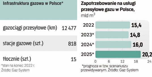 Mimo że w ubiegłym roku Gaz-System zakończył realizację kilku kluczowych inwestycji, takich jak gazociąg Baltic Pope oraz połączenia z Litwą i Słowacją, to konieczne są kolejne, m.in. ze względu na oczekiwany wzrost popytu na surowiec. Spośród nowych projektów najszybciej powinna zostać ukończona rozbudowa terminalu LNG w Świnoujściu, który zwiększy moce regazyfikacyjne z 6,2 mld m sześc. rocznie do 8,3 mld m sześc. i zaoferuje nowe usługi.
