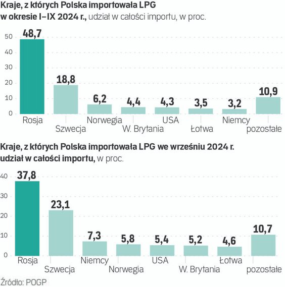 Od 20 grudnia zaczyna obowiązywać unijne embargo na import LPG z Rosji. W ub.r. stanowił on 45,8 proc. polskiego importu, a po trzech kwartałach br. nawet 48,7 proc. Polska w ostatnich latach była w stanie zaspokoić wewnętrzny popyt własną produkcją tylko w kilkunastu procentach. Co więcej, w UE jesteśmy największym konsumentem LPG. W ub.r. jego udział w zużyciu paliw silnikowych wynosił w Polsce 13,1 proc. Kolejne miejsce zajmowały Włochy (7,1 proc.) i Chorwacja (3,3 proc. ).