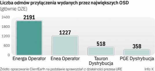 Między 2015 a 2021 r. operatorzy sieci dystrybucyjnych wydali ponad 6 tys. odmów przyłączenia do sieci instalacji wytwórczych (głównie OZE) o łącznej mocy ok. 30 GW, co stanowi ponad 50 proc. aktualnie zainstalowanej mocy wytwórczej wszystkich rodzajów źródeł produkujących prąd w Polsce, przy stanie na kwiecień 2022 r.