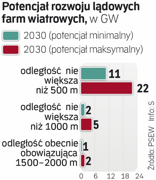 Janusz Gajowiecki, prezes Polskiego Stowarzyszenia Energetyki Wiatrowej, podkreśla, że na bazie rządowego projektu może powstać nawet do 7 GW mocy. Branża tłumaczy, że każda inna odległość oznacza, iż nowe projekty z wykorzystaniem wiatru powstaną najwcześniej pod koniec tej dekady.