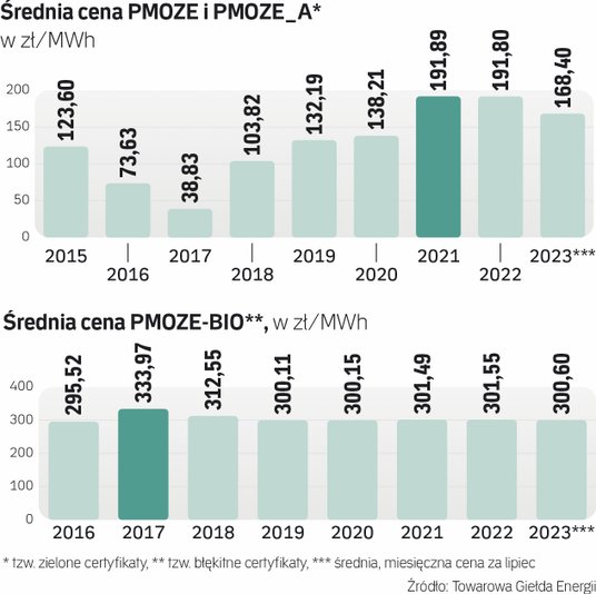 Ustawowy obowiązek zakupu certyfikatów nałożono przed laty na firmy sprzedające energię, aby wspierać finansowo instalacje OZE i pobudzić rynek. Właściciele OZE mogą te świadectwa pochodzenia sprzedawać na Towarowej Giełdzie Energii. Z roku na rok zakres tego obowiązku się zmniejsza, bo w międzyczasie rząd rozpoczął wspieranie nowych OZE poprzez aukcje. W efekcie z tego systemu korzystają instalacje OZE pochodzące sprzed systemu aukcyjnego, a więc przed 2016 r.