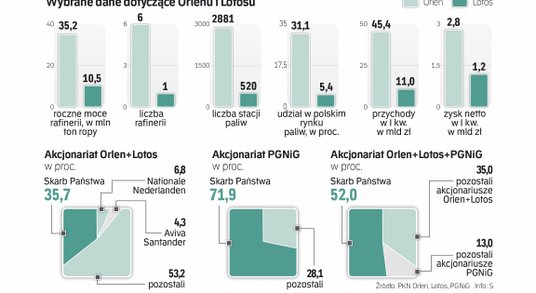 Sfinalizowane połączenie rafineryjnych koncernów oznacza, że wkrótce z przestrzeni publicznej zacznie znikać szyld „Lotos”. Najbardziej widoczny jest on w branży detalicznej sprzedaży paliw. Z ostatnich danych POPiHN wynika, że gdański koncern na koniec czerwca miał 522 stacje. Z tej puli 417 obiektów kupił węgierski MOL za 610 mln USD. Pozostałe będą własnością Orlenu. Oba koncerny nie zamierzają jednak pozostawiać marki „Lotos” na rynku. Mimo że dziś należy ona do płockiego koncernu, to planuje on przemianować stacje z tym logo na „Orlen”. Politykę ujednolicania szyldów na wszystkich rynkach prowadzi zresztą już od dłuższego czasu.