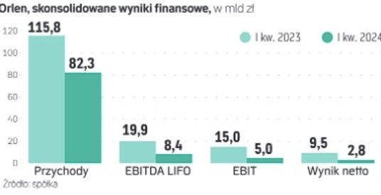 Mocno pogorszyły się też wyniki w biznesie rafineryjnym. Odnotowano spadek marż oraz ujemny wpływ transakcji zabezpieczających i wyceny kontraktów terminowych na CO2. Spadki były też w biznesach: petrochemicznym, energetycznym i obrotu gazem. Jedynie w detalu poprawiono zarobek. Doszło do tego dzięki zwyżkom marży paliwowej i pozapaliwowej oraz sprzedaży wolumenowej.