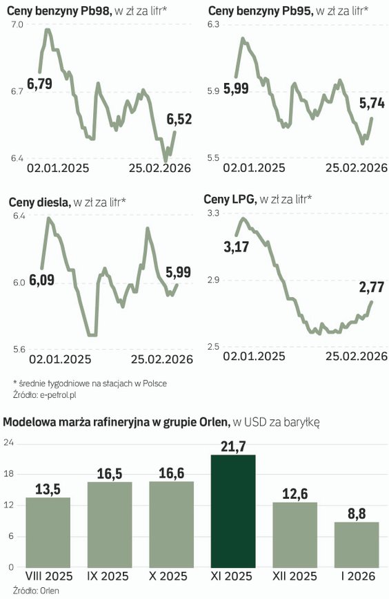 Specjaliści uspokajają jednak, że w najbliższych dniach nie nastąpią gwałtowne zwyżki. Według Jakuba Boguckiego, analityka rynku paliw e-petrol.pl, nasz kraj ma zapewnione wystarczające zapasy i dobrą dywersyfikację, jeśli chodzi o zaopatrzenie w ropę i paliwa gotowe. – Na razie nie ma powodów do panicznego tankowania na stacjach, bo ceny jeszcze nam nie rosną, a na pewno nie dojdzie do sytuacji, w której zabraknie paliwa na stacjach – stwierdza Bogucki.