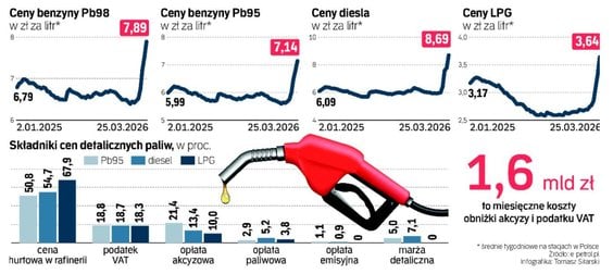Jednak część ekspertów wskazuje, że realny rachunek może być wyższy. – Jeśli przyjmiemy, że obniżka ceny wynosi ok. 1,2 zł na litr, to – przy skali konsumpcji paliw w Polsce – daje to koszt rzędu ok. 3 mld zł miesięcznie – zwraca uwagę Karol Pogorzelski, ekonomista Banku Pekao. A prof. Witold Orłowski szacuje budżetowe ubytki na co najmniej 2 mld zł miesięcznie.