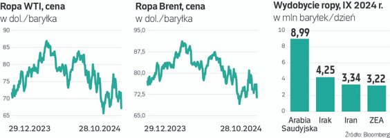 Cena baryłki ropy gatunku WTI spadła od początku roku o 5,5 proc. Przez ostatnie 12 miesięcy zniżkowała ona natomiast o 17,6 proc. W kwietniu osiągnęła ona szczyt na poziomie prawie 87,7 USD za baryłkę. Gdyby spadła ona poniżej poziomu z wrześniowego dołka, to stałaby się najniższa od maja 2023 r. Gdyby natomiast zeszła poniżej 60 USD za baryłkę (czego nie wyklucza część analityków), to byłaby najmniejsza od kwietnia 2021 r.