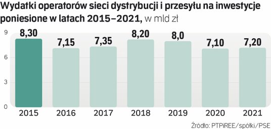 Polskie Towarzystwo Przesyłu i Rozdziału Energii Elektrycznej (PTPiREE), skupiające operatorów sieci przesyłowej i dystrybucyjnej, oszacowało koszt modernizacji linii średniego napięcia i „przesiadki” z napowietrznych na podziemne na ok. 48 mld zł. Urząd Regulacji Energetyki szacuje, że dostosowanie najbardziej krytycznej sieci dystrybucyjnej do przesyłu zielonej energii może kosztować co najmniej 130 mld zł do 2030 r. Tymczasem w 2021 r. wydatki na ten cel wyniosły 7 mld zł. Nakłady będą musiały więc wyraźnie wzrosnąć.