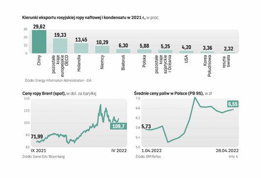 Szósty pakiet sankcji na Rosję uwzględni zakaz importu ropy. W ubiegłym roku zyski z eksportu ropy i gazu zapewniły 36 proc. wpływów do rosyjskiego budżetu: importowana przez Europę ropa przyniosła Kremlowi 104 mld dol., zaś gaz 43,4 mld. A to niespełna połowa surowca eksportowanego przez Rosję do UE.