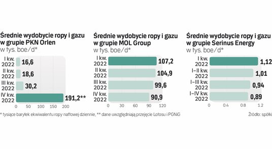 W tym roku Orlen w biznes poszukiwawczo-wydobywczy chce zainwestować 6,4 mld zł. Najwięcej pieniędzy wyda na zagospodarowanie trzech norweskich złóż: Tommeliten Alpha, Yggrdasil i Fenris. Początek eksploatacji pierwszego z nich planowany jest na przyszły rok, a dwóch kolejnych dopiero w 2027 r. W naszym kraju kluczowe projekty koncernu dotyczą rozbudowy kopalni ropy i gazu w Lubiatowie (woj. lubuskie) oraz zagospodarowania złóż Różańsko (woj. zachodniopomorskie) i Rokietnica (woj. wielkopolskie). W pozostałych trzech krajach inwestycje i wydobycie będą znacznie mniejsze niż w Norwegii i Polsce.