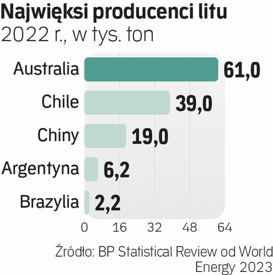 Rosja jest drugim dostawcą kobaltu dla świata, ale przepaść między DRK jest ogromna. Rosjanie w ubiegłym roku wydobyli 9,8 tys. ton. Kobalt, choć kosztuje nieco więcej od litu, nie daje jednak takich zysków i tak szybko nie drożeje. W 2022 r. cena tony kobaltu wynosiła 63,52 tys. dol., a litu 46,82 tys. dol. (w listopadzie nawet do 87 tys. dol. za tonę). O ile jednak w ciągu dwóch dekad cena kobaltu się podwoiła, o tyle lit podrożał 8,5-krotnie.