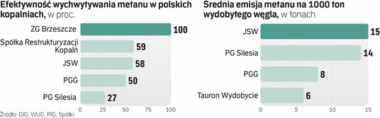 Kopalnie Polskiej Grupy Górniczej emitują więcej, bo średnio od 8 do 14 ton metanu na 1000 ton wydobytego węgla. Przedstawiciele spółki jeszcze w ub.r. przekonywali, że rozporządzenie w takim kształcie może oznaczać szybką likwidację kopalń węgla kamiennego. W najczarniejszym scenariuszu z 12 kopalń PGG po 2027 r. mogłyby dalej pracować, mieszcząc się w dopuszczalnym limicie, cztery.