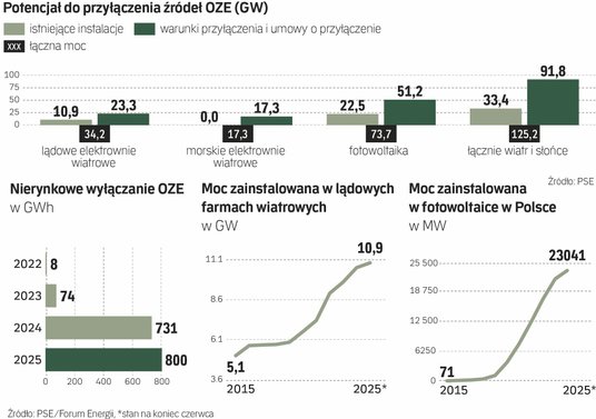 Dostępność elastycznych zasobów może wpływać na zmniejszenie konieczności ograniczania generacji OZE (poprzez nierynkowe redysponowanie). Jak wynika z danych Forum Energii i PSE, w ciągu pierwszych sześciu miesięcy 2025 r. zmarnowaliśmy w Polsce potencjał wytworzenia blisko 800 GWh energii elektrycznej ze źródeł odnawialnych – to więcej niż przez cały 2024 r. – Niedostosowanie poboru energii do pracy elektrowni wiatrowych i słonecznych z miesiąca na miesiąc zwiększa koszty funkcjonowania systemu – uważa FE. Aby złagodzić efekt tych wyłączeń, potrzebne są inwestycje w magazyny chemiczne, magazyny cieplne (Power-to-Heat, P2H), elektromobilność czy elektrolizery. Te inwestycje postępują, ale ich efekt zobaczymy najwcześniej pod koniec lat 20.