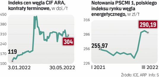 Kopalnie prowadzą zaawansowane rozmowy dotyczące podwyższenia cen węgla w kontraktach na kolejny sezon grzewczy i kolejny rok. Aneksy do umów zawierają już pierwsze kopalnie, takie jak Bogdanka (należąca do Enei) i PG Silesia zarządzana przez Bumech. Ceny idą w górę od kilku do nawet kilkudziesięciu procent. Oznacza to droższy prąd od przyszłego roku, co odzwierciedlają ceny na Towarowej Giełdzie Energii. W dostawie na 2023 r. utrzymują się w maju powyżej 1 tys. zł za MWh.