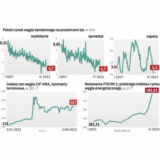 Import z RPA, Kolumbii, USA, Australii i Indonezji – zgodnie z zapowiedziami rządu ma wypełnić lukę po węglu rosyjskim, który trafiał do sektora bytowo-komunalnego. Ministerstwo Klimatu i Środowiska zapowiedziało, że dzięki dostawom drogą morską zabezpieczonych jest dodatkowo 8 mln ton surowca. Jednak uwzględniając przepustowość portów oraz brak możliwości importu przez granicę wschodnią, według szacunków Izby Gospodarczej Sprzedawców Polskiego Węgla (IGSPW) zabraknie w tym roku ok. 9–11 mln ton węgla na rynku. – To jest ilość, którą trudno będzie uzupełnić – mówi Łukasz Horbacz, prezes Izby. Deficyt surowca podbija ceny. Wynagrodzenia zaś najgorzej sytuowanych pozwalają już na zakup o połowę mniej opału niż jeszcze rok temu.