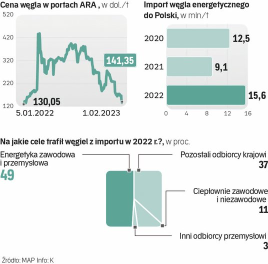Spadek cen węgla w kraju to efekt zniżki jego kursu na rynkach światowych, w tym w portach ARA. Rynki jeszcze w czerwcu wyceniały węgiel na poziomie 380 dol. za tonę, obecnie to już niewiele ponad 141 dol. Dolar też potaniał: z niemal 5 do 4,3 zł, co dodatkowo wpłynęło na obniżkę cen.
